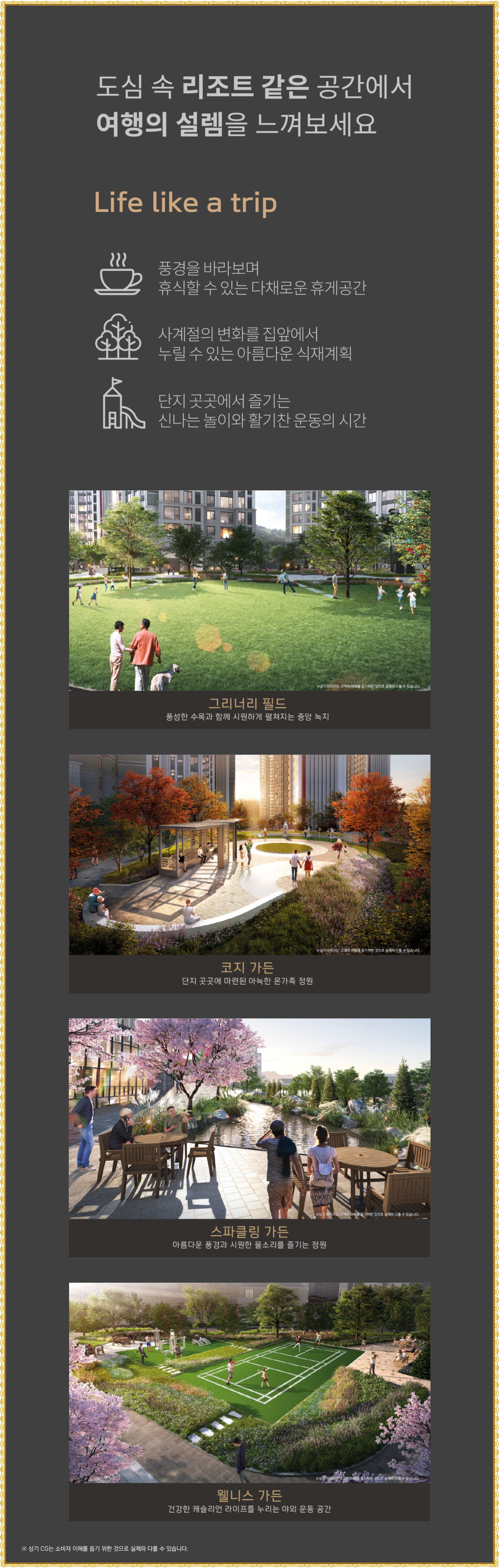 이곳 현장은 컨셉을 도심에서 여행을 느낄수 있는것으로 잡고 있어 다양한 조경편의시설과 더불어 소공원을 단지 바로 인근에 자리할것으로 보여 여유롭게 지내실수 있는 곳인것 같습니다.