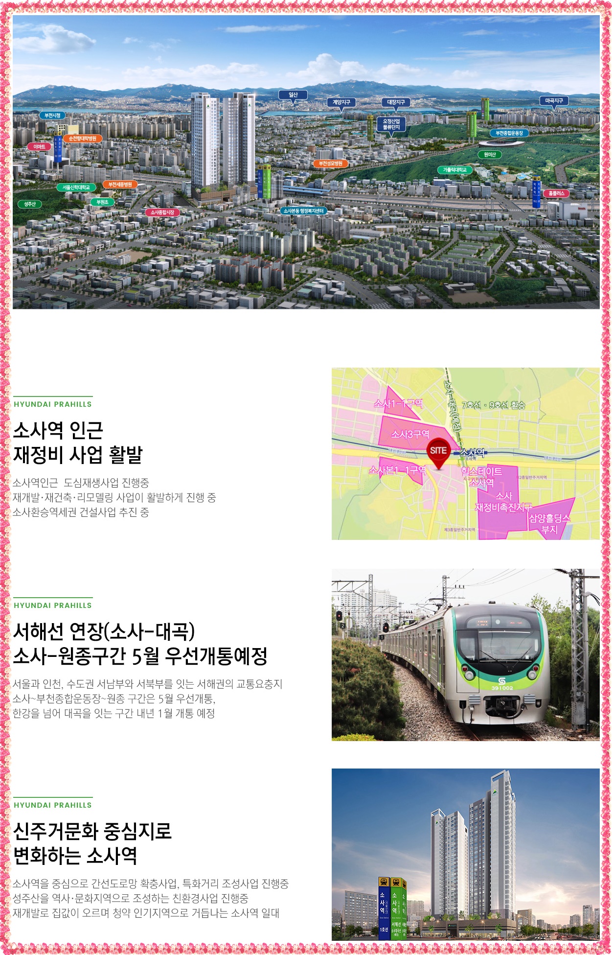 교통환경부터 살펴보게되면 초역세권에 자리한만큼 신속한 이동이 가능한것으로 보입니다 1호선과 서해선 소사환승역등을 가지고 있을 뿐만 아니라 앞으로가 더욱 기대되는 서해선 연장이 예정돼 있기 때문에 향후가 더욱 기대되는