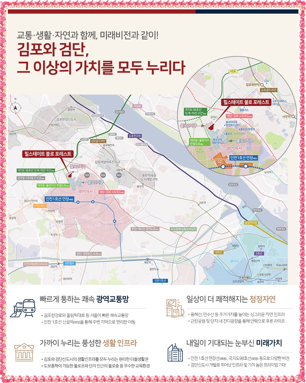 입지적장점으로는 김포한강로와 올림픽대로를 통해서 서울권으로 편리한 이동이 가능한것으로 보이며신설역 1호선이 예정돼 있는등의 굩오인프라를 지닌것으로 보입니다.